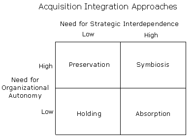 Depending on the score on these two factors (see graph), the preferred acquisition integration approaches are: